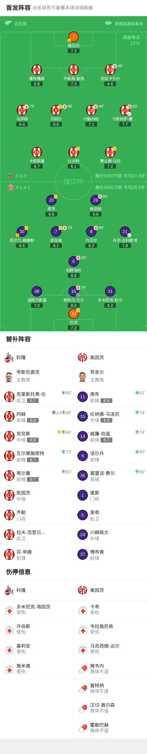 北京时间1月17日德国足球顶级联赛 联赛 第18轮,科隆主场对阵美因茨。科隆阿赫梅开二度。美因茨斯特凡-贝尔破门。最终比分科隆 2-1 美因茨。