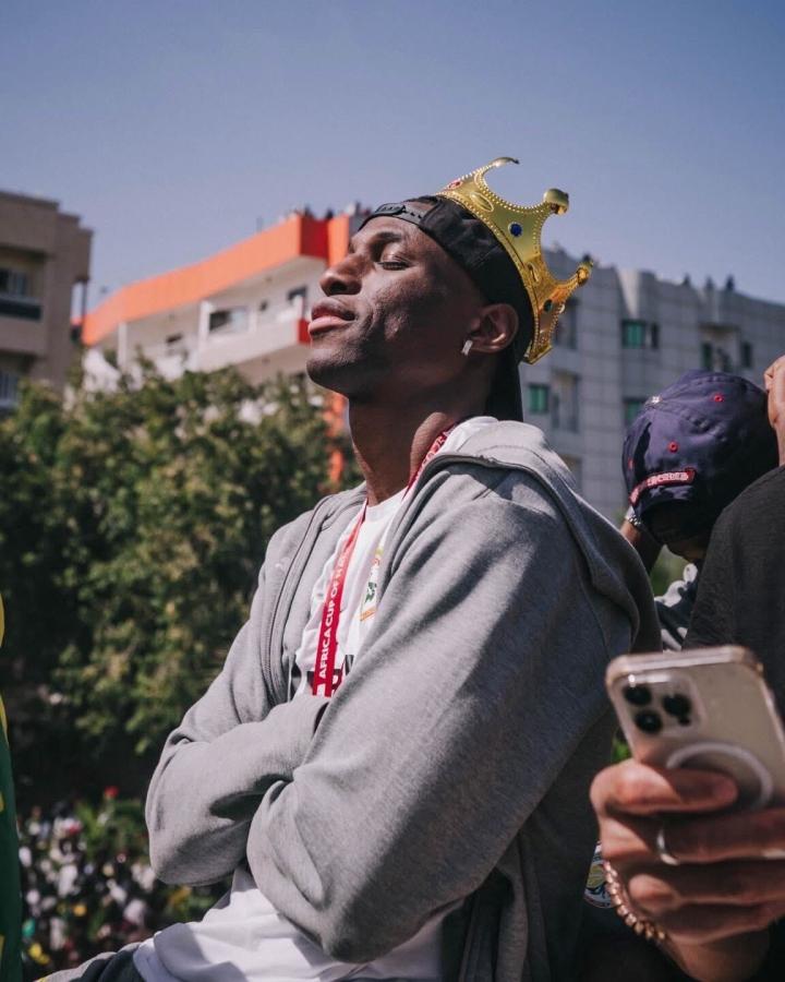 作为本届非洲杯的重要功臣之一,前锋雅克松成为庆典中的绝对焦点。在球队乘坐敞篷巴士巡游时,雅克松被球迷“加冕”,头戴象征王者的皇冠,站在车顶向人群致意。