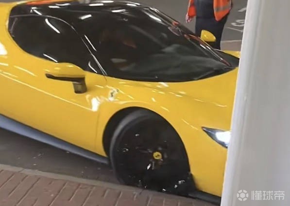 视频显示,在托纳利驾驶法拉利抵达球场后,一名工作人员帮他停车,他在倒车时急转向左,导致前右车轮的轮毂似乎刮到了路边。