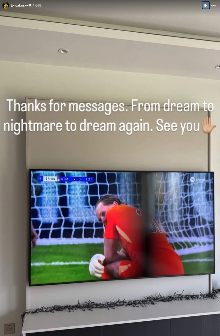 热刺门将金斯基社媒:从梦想,到噩梦,再到再次回到梦想